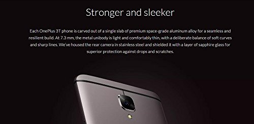 -. Feature : Step up your game with the new Qualcomm® SnapdragonTM 821 processor (2.35 GHz), which increases performance without sacrificing power efficiency. We've also implemented a new file system that accelerates transfer and boot speeds. The most demanding apps launch quicker and perform more smoothly than ever before. / Packing 6GB of LPDDR4 RAM, the OnePlus 3T allows you to do more, faster. Effortlessly shift between shooting 4K videos and playing graphic-intensive games without any delay or lag. And since apps are always evolving to become more and more demanding, the OnePlus 3T has what it takes to tackle whatever the future may bring. / The OnePlus 3T is available with up to 64GB of storage, enough internal space to satisfy even the most demanding virtual hoarders. Thanks to UFS 2.0 technology, move data up to three times faster than the more commonly seen eMMC5.1. / Our fingerprint sensor unlocks your OnePlus 3T in just 0.2 seconds, even when the screen is turned off. Crafted from premium ceramic, the fingerprint sensor actively learns and progressively improves, so your scans get even more precise over time. It's fast, it's accurate, and it's secure. / Our 5.5" Optic AMOLED display produces incredibly vivid and lifelike colors. Custom-engineered gamma corrections create a more natural viewing experience, while a dual-polarizing layer ensures clarity, even in bright sunlight. The end result? Deep blacks, bright whites, and authentic color reproduction - all at a fraction of the power consumption. It's the smarter smartphone display.
