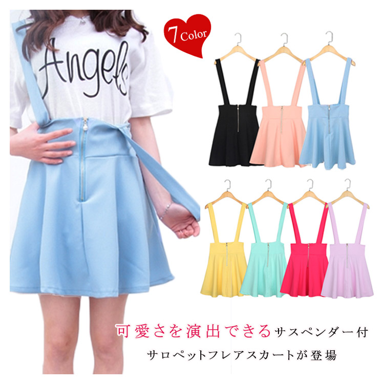| 可愛さを演出できるサスペンダー付サロペットフレアスカートが登場オールシーズン大人気のフレアスカートはオシャレ女子には欠かせない?シンプルな無地のデザインなのでトップスを選ばず 何でも合わせやすいのでコーデがしやすくおすすめ♪ふんわりと広がるフレアデザインが女の子らしくてGOOD!人気の8タイプ展開から選べるのも魅力的!飽きのこない素材で季節関係なく着用できるのも嬉しい!!シンプルなTOPSとスニーカーと合わせるトレンドコーデがオススメ★☆ | |