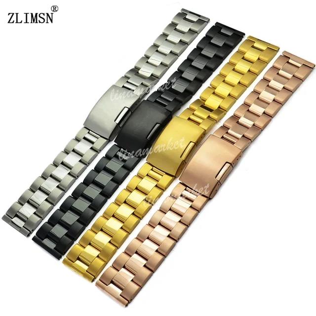 ZLIMSN 줄 18-30 미리메터 남성 솔리드 스테인레스 스틸 시계 밴드 스트랩 골드 실버 블랙 여성 팔찌 Relojes 아저씨 S3