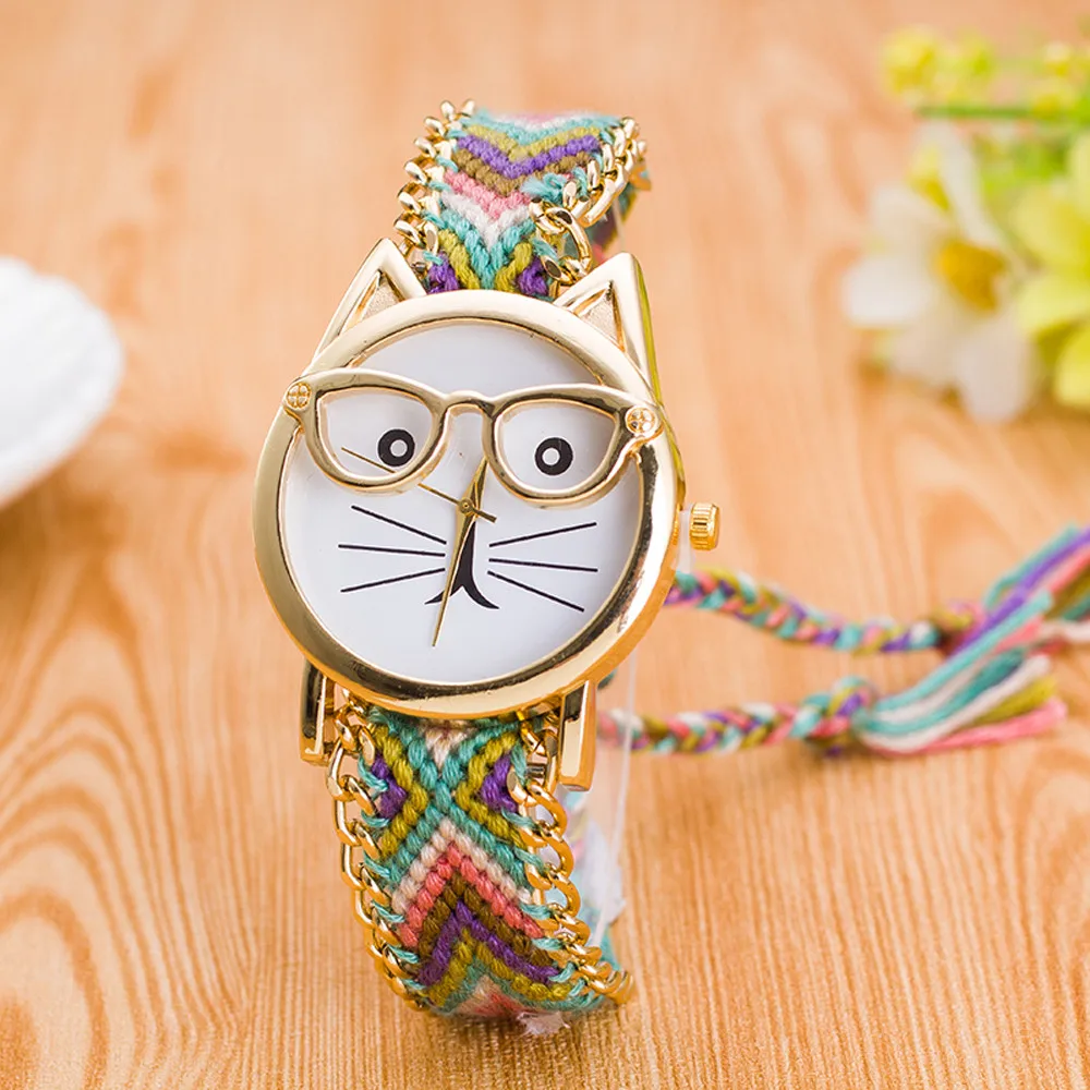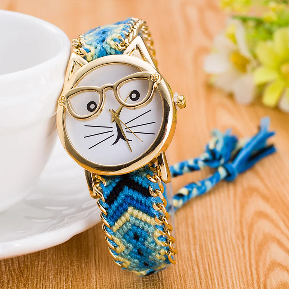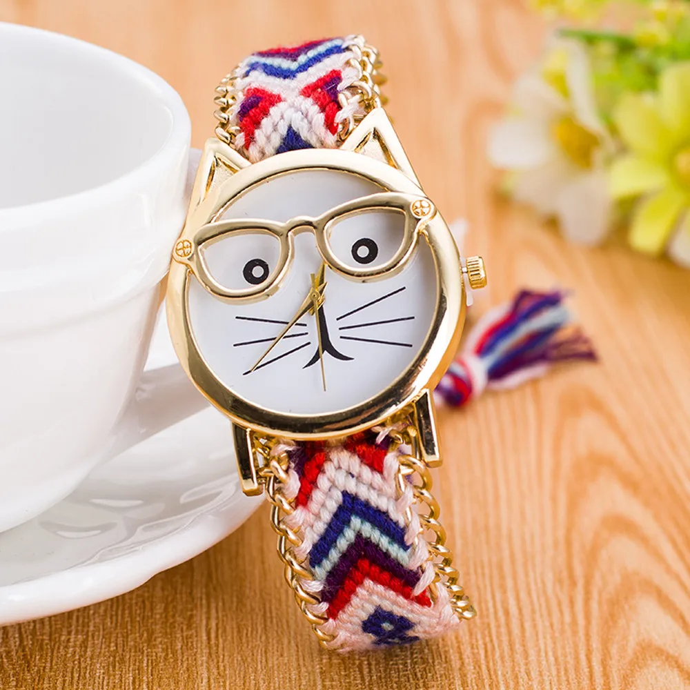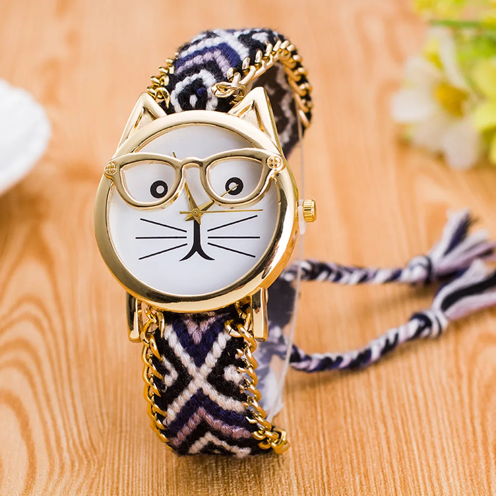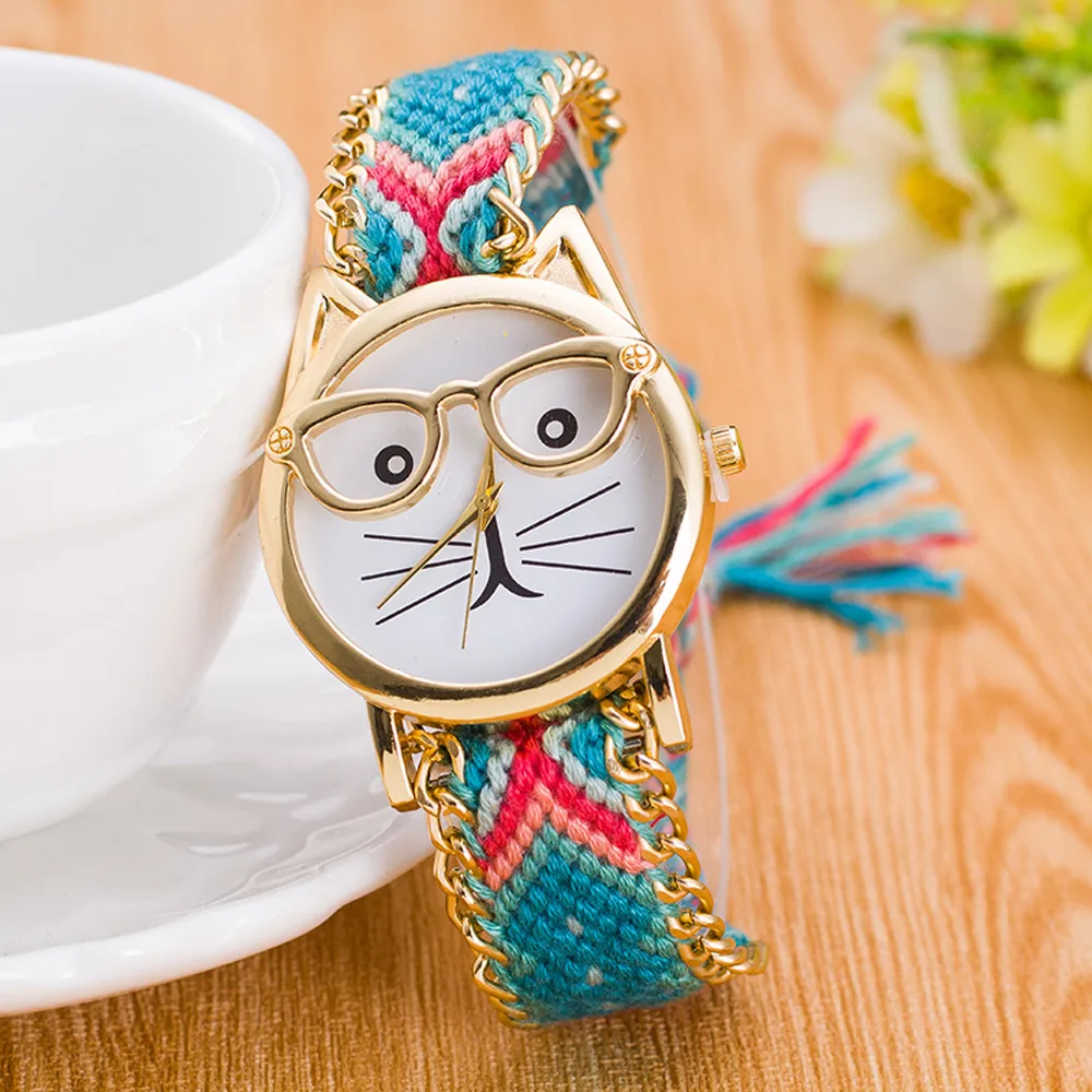 | [해외] Xiniu 패션 여성 시계 귀여운 안경 고양이 여성 아날로그 쿼츠 손목 시계 다이얼 팔찌 시계 선물 |