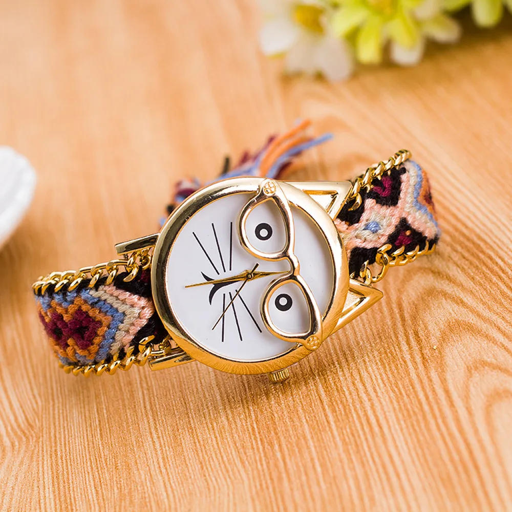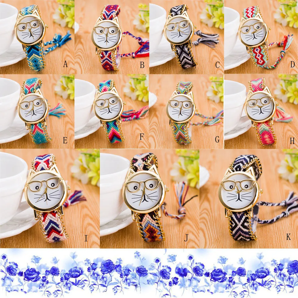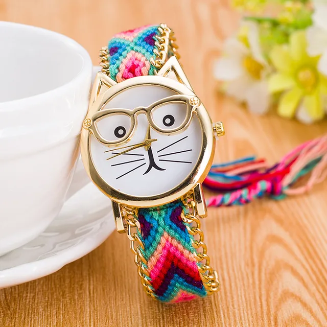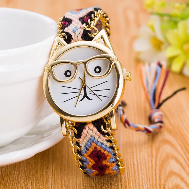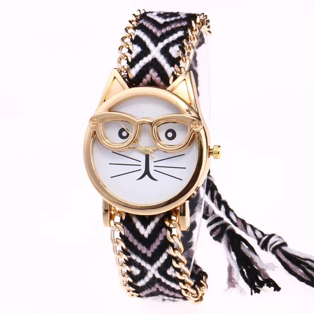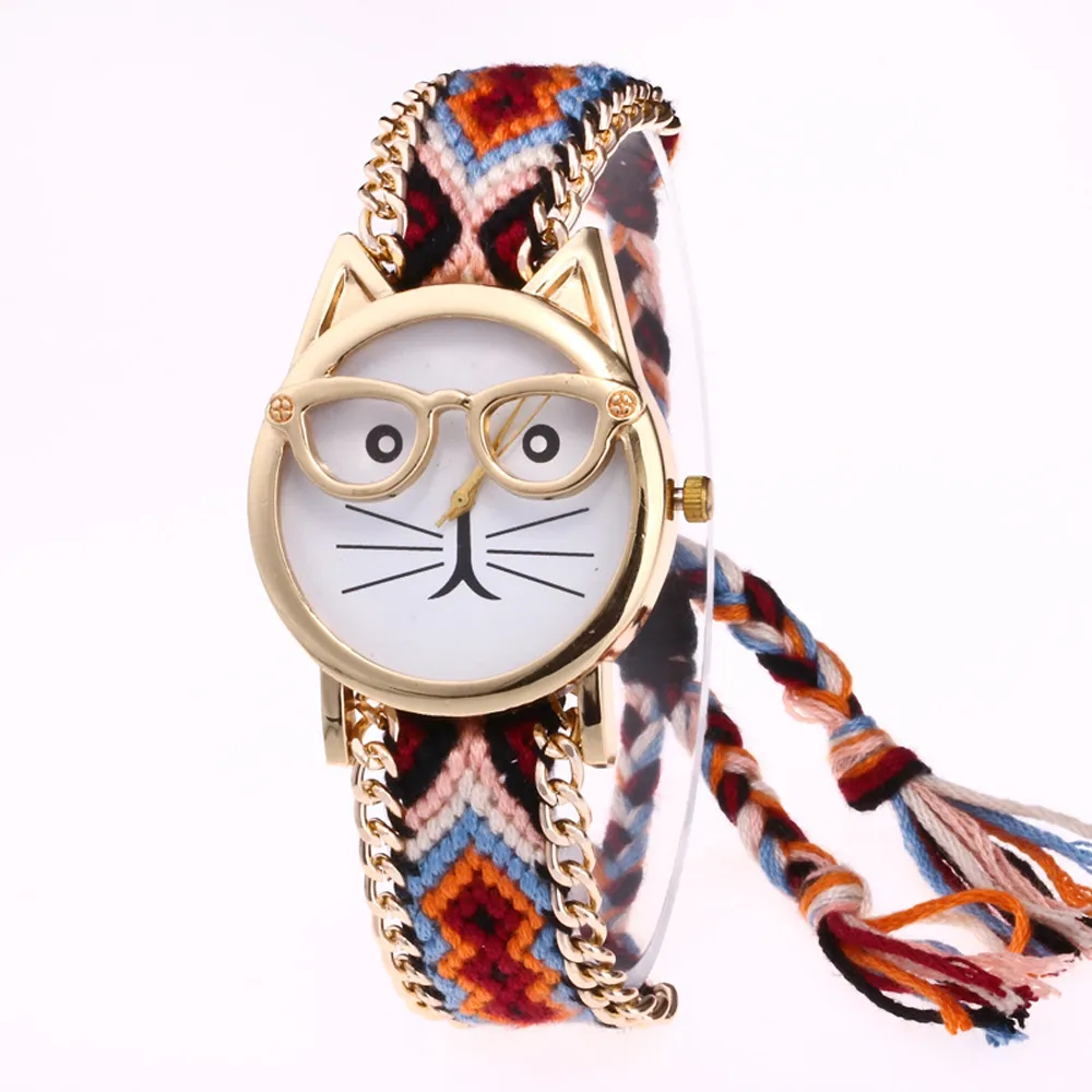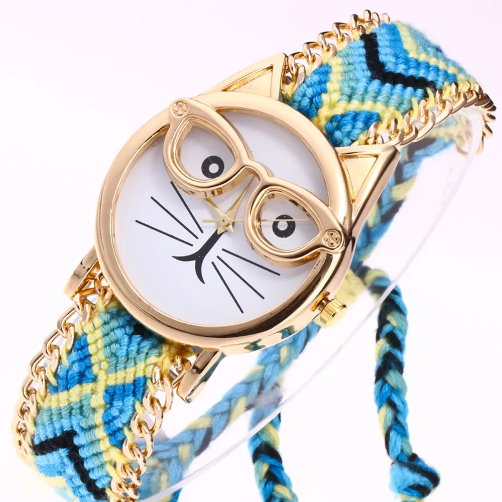 | [해외] Xiniu 패션 여성 시계 귀여운 안경 고양이 여성 아날로그 쿼츠 손목 시계 다이얼 팔찌 시계 선물 |