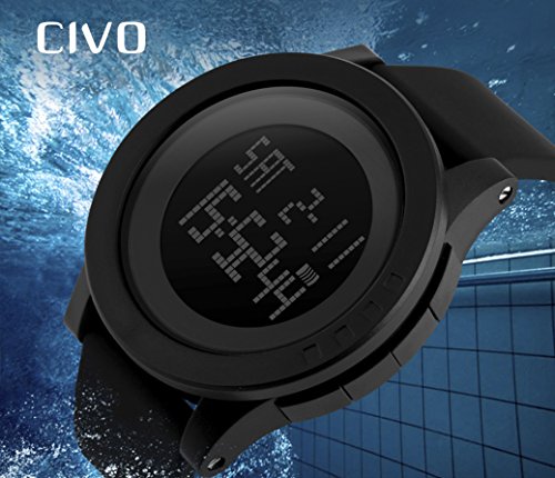 -. Title : CIVO メンズボーイズ多機能スポーツ腕時計 デジタル腕時計 スポーツウオッチ 5気圧防水 sports watch カジュアル運動腕時計 LCD液晶画面 ビッグ数字ビッグフェイス シンプルなデザイン 日本語取扱説明書付け ブラック