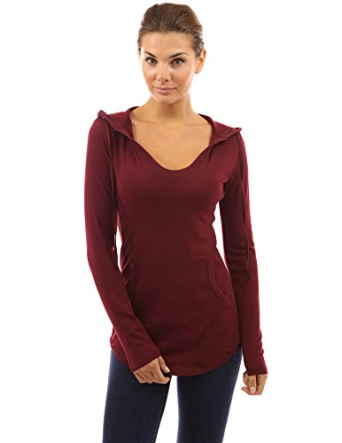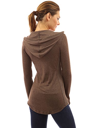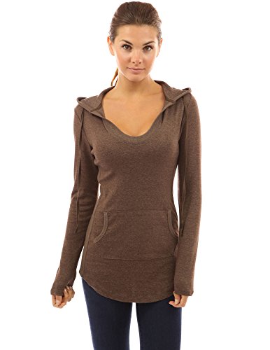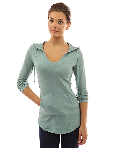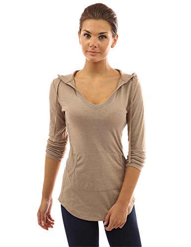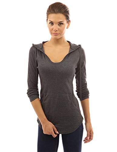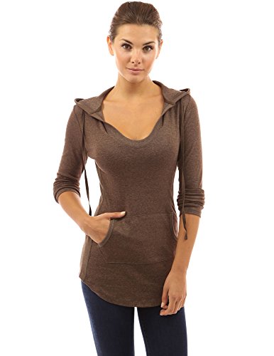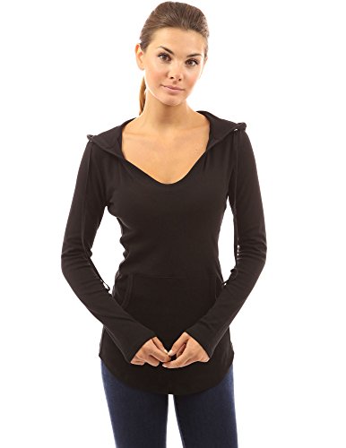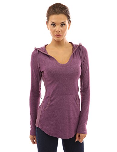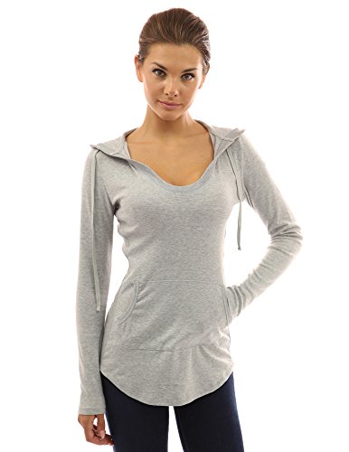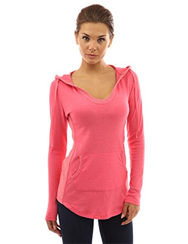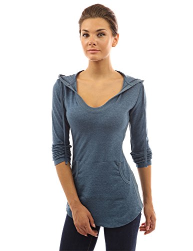Cotton Blend Hoodie Ribbed Sides Pocket Curve Hem Tunic Casual Top. Model in pictures is 5 feet 8 inches (173cm) tall wearing size S.