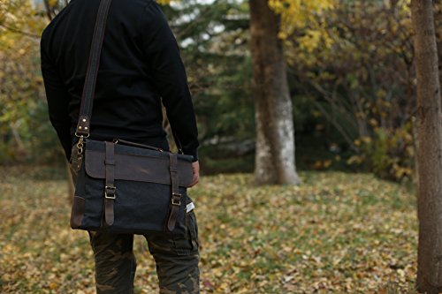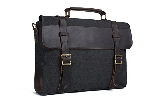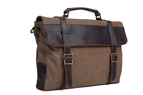 -. Title : ROCKCOW Vintage Canvas Leather Messenger Traveling Briefcase Shoulder Laptop Bag