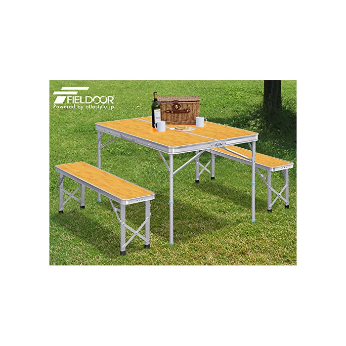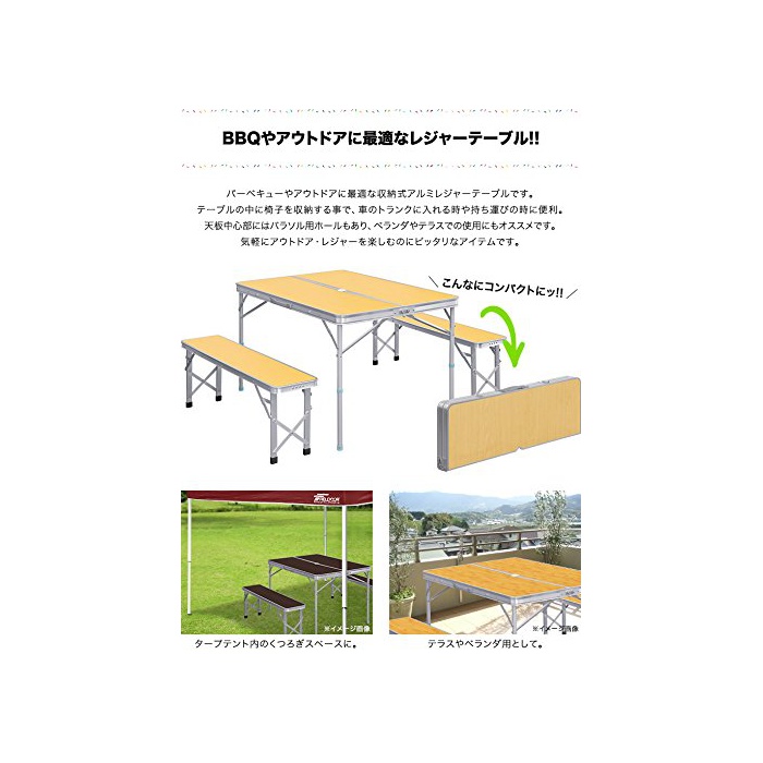 원본상품명: FIELDOOR ?納式アルミレジャ?テ?ブル (大判) シルバ?/ダ?クブラウン/ナチュラル/ホワイト/バンブ?/ゼブラ 幅110×?行80×高さ70cm/ベンチ分離タイプ)