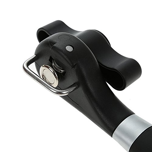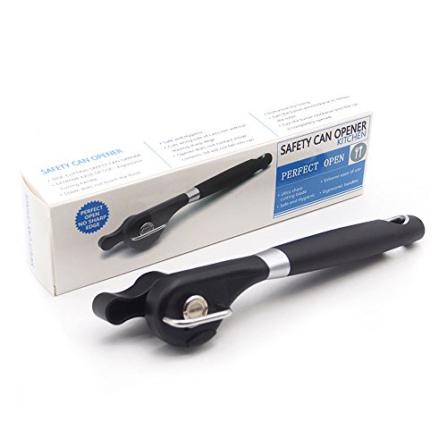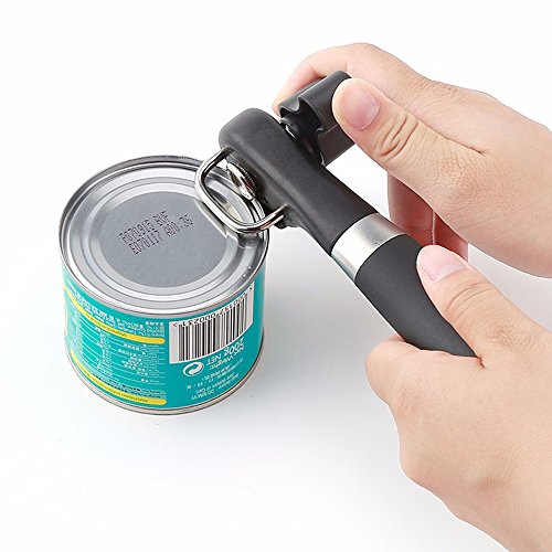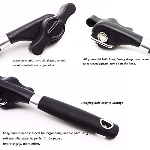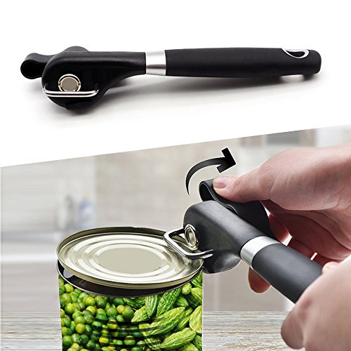 - OPEN YOUR CANS HASSLE FREE: This tin opener has a comfortable and soft turning knob for easy operation,without the opener touching your food.The ergonomic anti-slip handle offers a comfortable grip for your safety and sharp cutting wheel make opening cans nearly effortless.Thanks to its extra sharp blades, this amazing can opener slices through the side of the can, and lifts its lid in seconds. No need to struggle with dangerous knives to open your cans