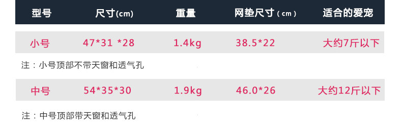 S 47*31*28cm, weight 1.4kg, suitable for about 7 kg or less