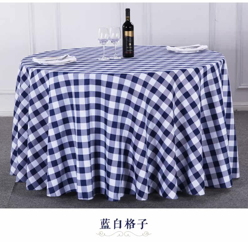 󰄬格子小清新桌布布艺圆形餐桌布酒店餐厅咖啡厅圆桌台布田园格子布