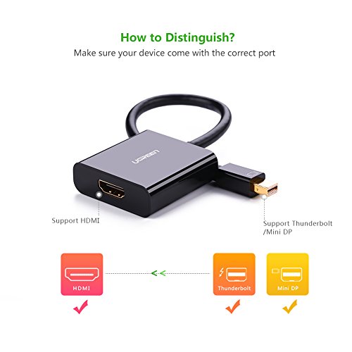 UGREEN Active Mini DisplayPort (Thunderbolt Compatible) to HDMI Male to Female Adapter, Support Eyefinity Technology, 4K Mini DP to HDMI Converter for MacBook, MacBook Pro and more
