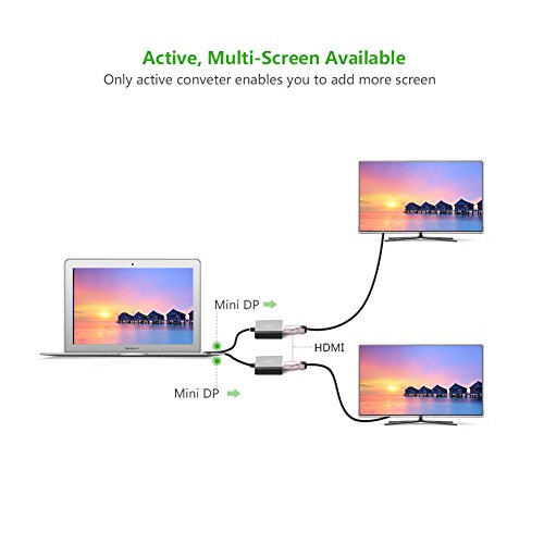 USE: Active Mini DP to HDMI converter is designed to connect a Mini DP/Thunderbolt port compatible PC/graphic card to an HDTV/monitor/projector which with HDMI port; a separate HDMI cable (sold separately) is required. This thunderbolt to HDMI adapter supports AMD Eyefinity Multi-Display technology, breaks the boundaries of traditional PC displays, with multiple monitors, games become more immersive, workstations become more useful and you become more productive