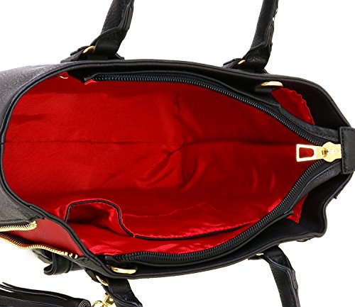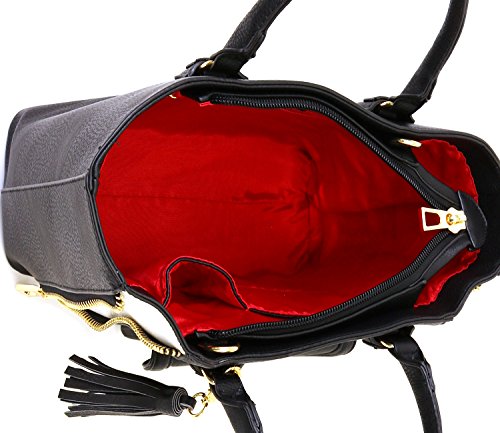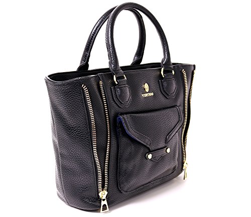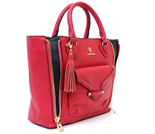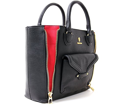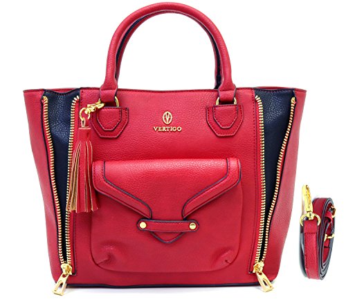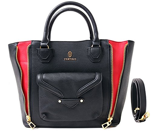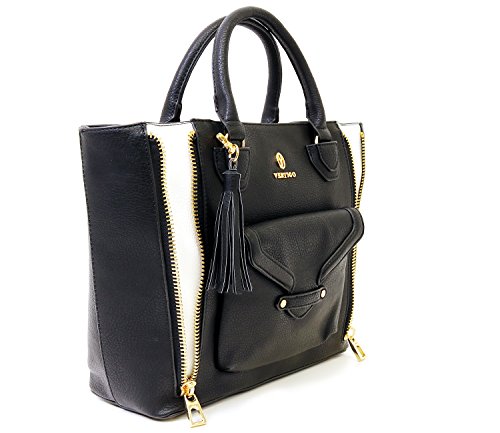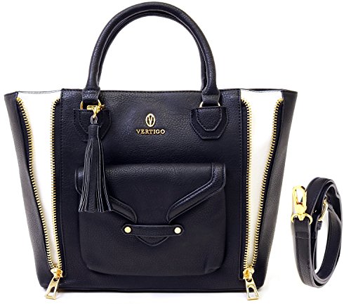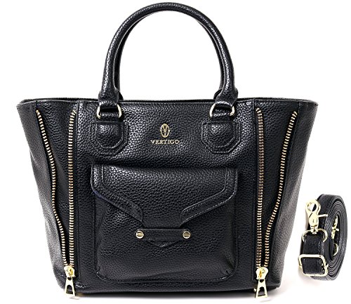 Product Description Vertigo Paris brings us exciting bags for the dedicated fashionista. The fabulous Vertigo Dylan Medium Satchel has plenty of space for everything and plenty of style for anything. Features, faux leather exterior, a top-zip closure, removable adjustable shoulder cross-body strap, front flap pocket and zippers with contrast color trim, polished Signature Logo at front and two rolled top handles with 5 drop, fully lined interior includes dust bag. Vertigo Paris Designed in Los Angeles - Vertigo's product line includes every lady's wardrobe staples including dresses, tops, trousers, skirts and handbags, the brand that presents the feminine yet modern and clean-out collection without breaking the bank! 0