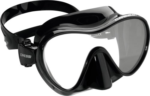 Frameless masks are loved by many divers for their low-profi le and ability to fold fl at for easy carrying, even in a BC pocket. Cressi's frameless design bonds a high-grade silicone skirt directly to a single lens for the ultimate in simplicity. The low-internal volume allows for eff ortless clearing and quick-adjust strap buckles are molded directly into the skirt for a fl exible fi t and reduced drag. It also represents an unbeatable value, with a cost roughly half that of similar masks.