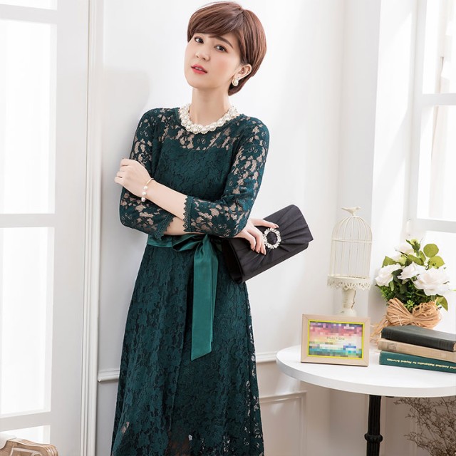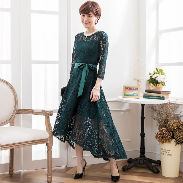 贅沢にあしらわれたコードレースとフィッシュテールの上品な揺れ感が歩く姿を美しく彩るミモレ丈ワンピースです。首周り・袖・裾にはケミカルレースが施され、華やかな印象にしてくれます。フィッシュテールのレイヤードスカートで脚を優雅に見せてくれます。