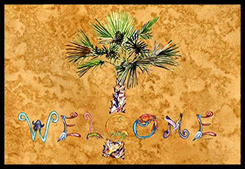 Caroline's Treasures 8709MAT Welcome Palm Tree on Gold Indoor or Outdoor Mat, 18 x 27", Multicolor