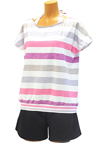 -. Title : コンビネーション ボーダー柄 カバーアップ・パンツ付 ビキニ 4点セット レディース 水着 体型カバー ABS-51601 11L PINK