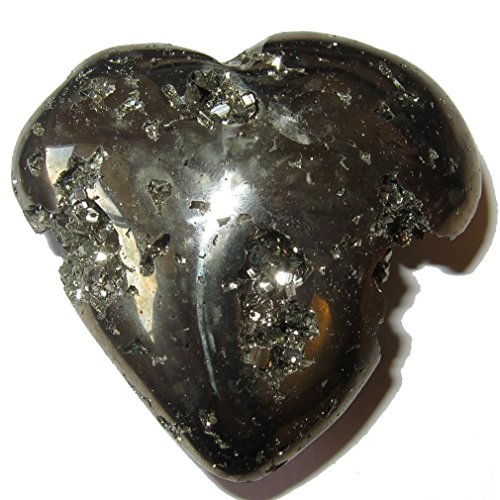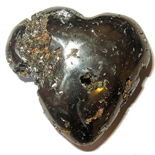Your heart is made from pyrite crystal of Peru. This shiny golden piece has natural cluster gem caverns in its plump and pretty form. Receive the exact one featured when ordering from Satin Crystals.