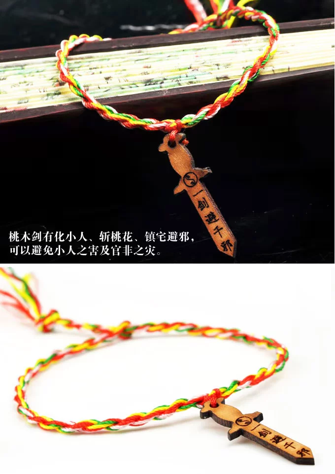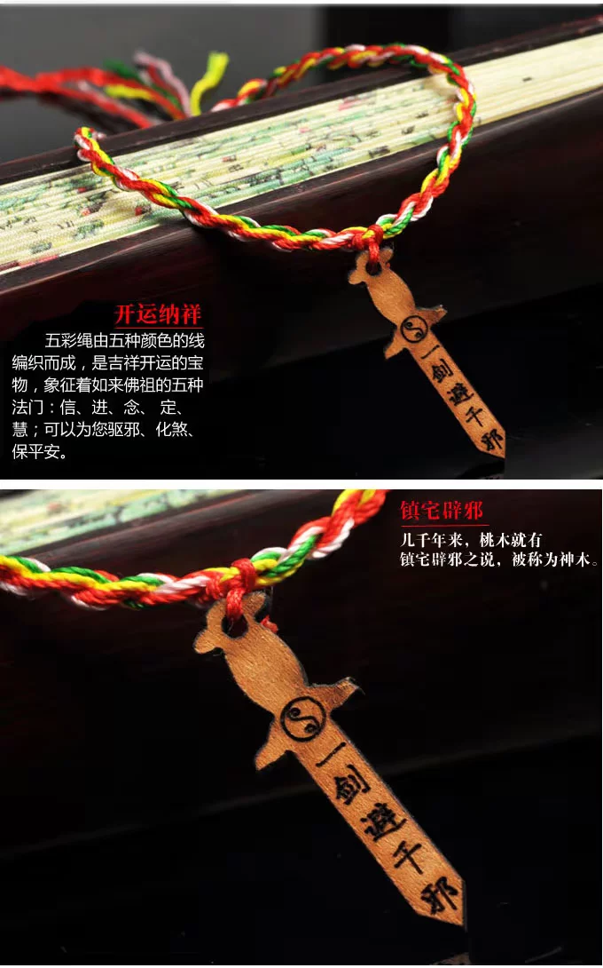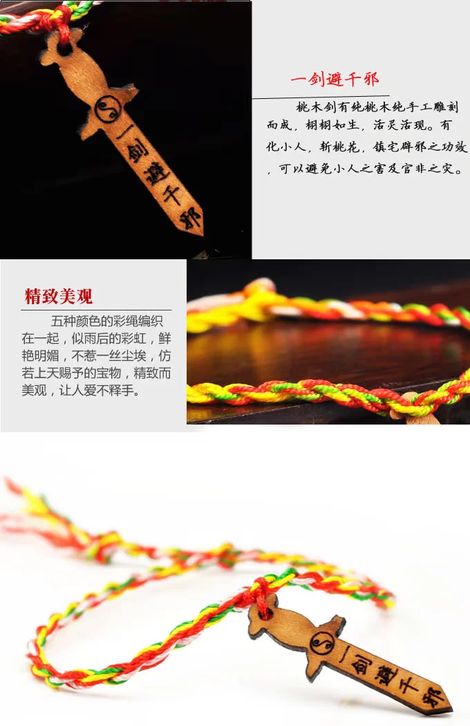 正宗随身桃木剑五色绳手链 *五色线手串* 纯手工编织手绳