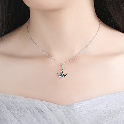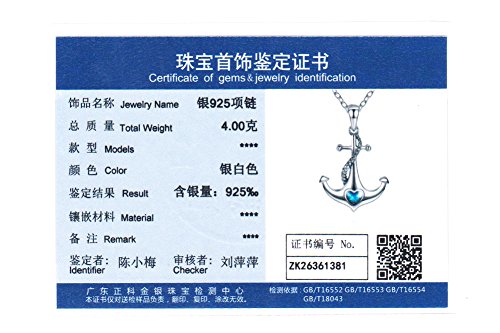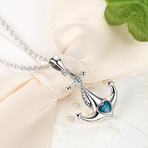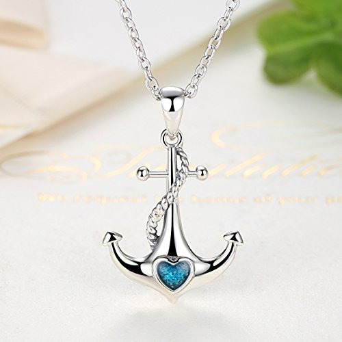 Heart Anchor with Ocean Blue Heart Pendant Size:22*17 mm,Rolo Chain Length:18",Width:1.2 mm,Spring-ring Clasp