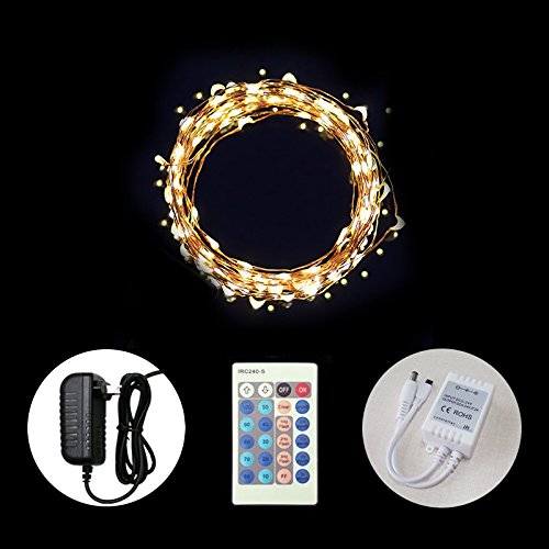 Starry Night String Lights. 33 feet, 100 LED, Soft white, Copper wiring, Dimmable with remote control, Waterproof