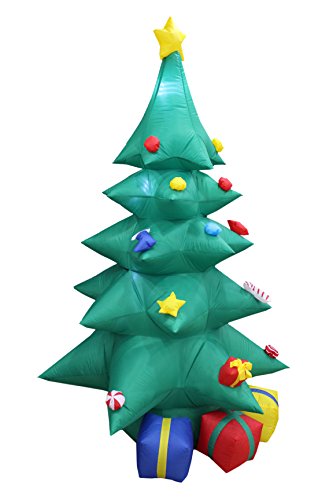 8 Foot Tall Lighted Christmas Inflatable Green Tree with Multicolored Gift Boxes and Star Indoor Outdoor Garden Yard Party Prop Decoration