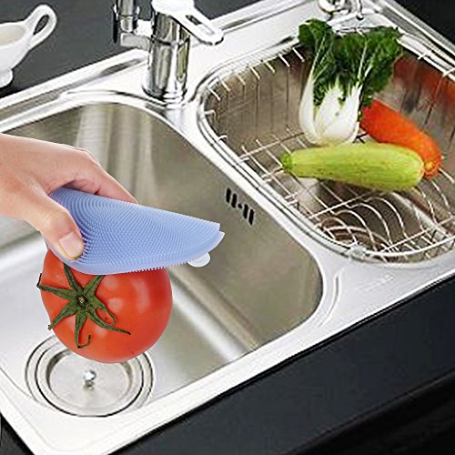 - The product is soft compared to the traditional cleaning brush, it can be used to clean pots, bowls, cups, vegetables, fruits and so on. The scrubber is about 4.5 inches in diameter, you can even take a shower and wash your face, also be used as a heat shield and kitchen gloves