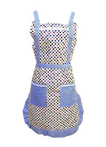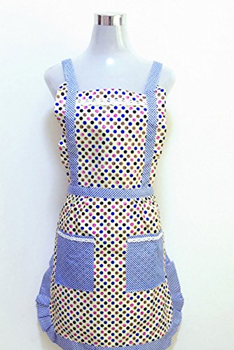 CRB Kitchen Cute Baking Cooking Baker Chef Apron with Pockets (Polka Blue)