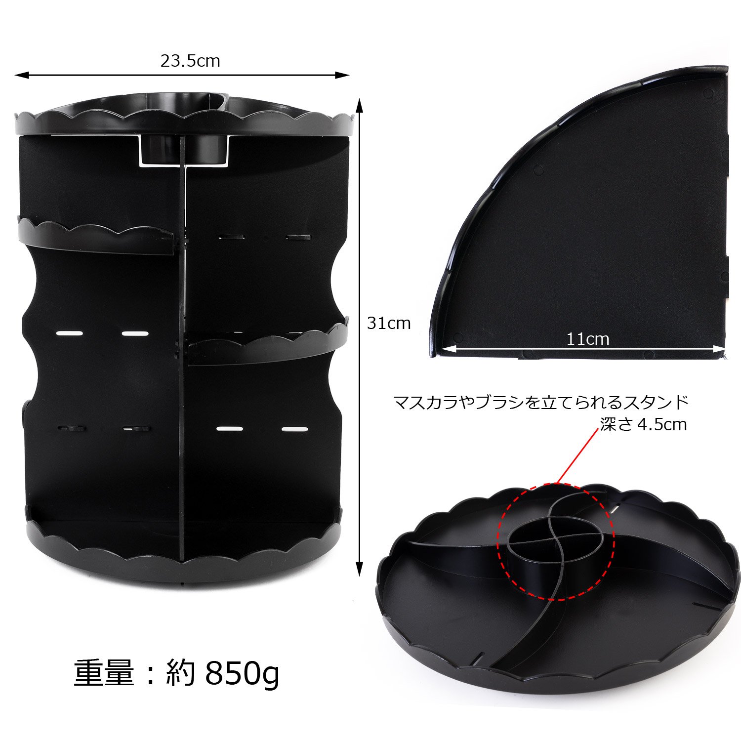 You can decorate important cosmetics pretty easily, easy storage, 360 degree rotation type storage location is also visible.