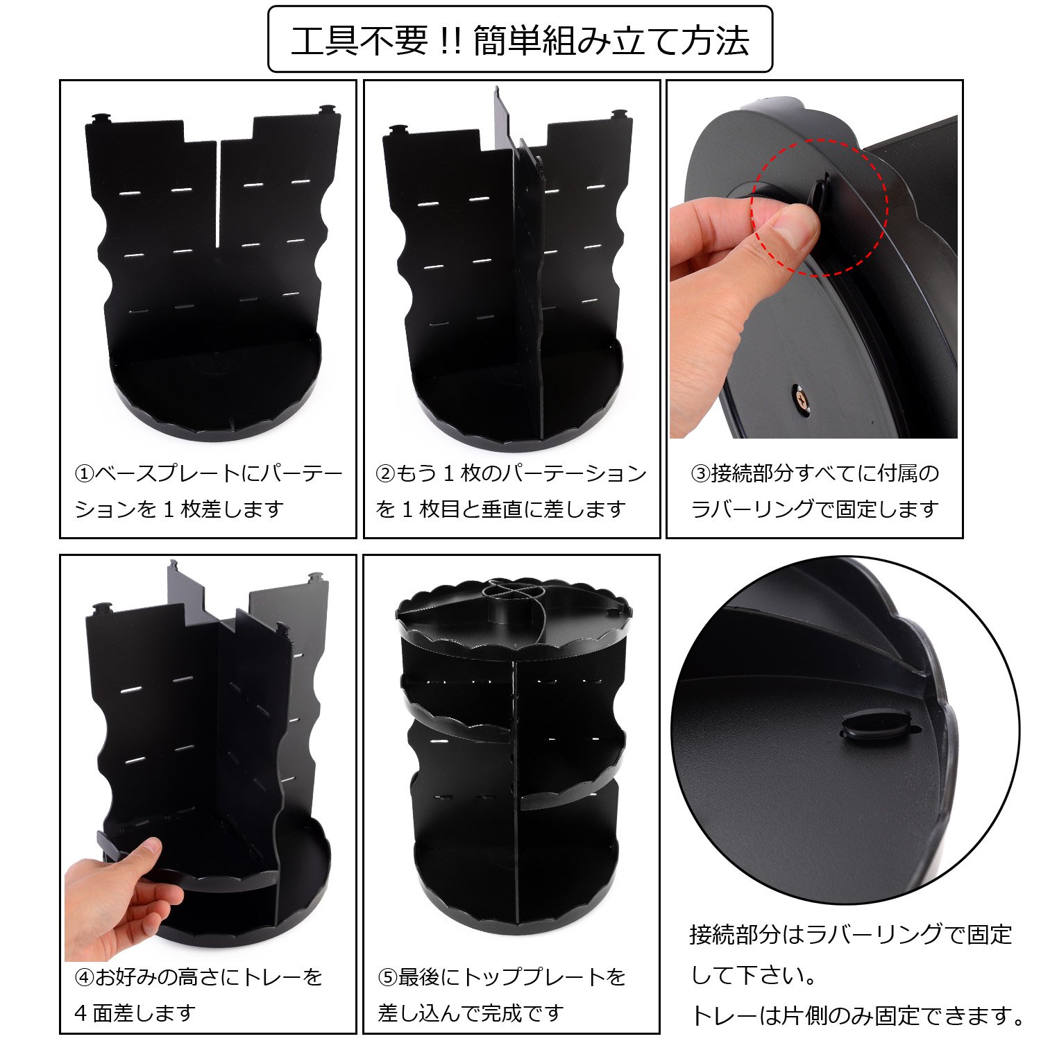 There is no need for tools to assemble, just by fixing the dividers by hand with hands and fixing with a ring, so even female people can easily assemble.