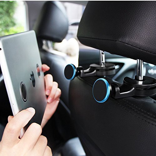 ❤ What's in the box: 2 PCS(Left+Right) Blue Car Headrest Hangers with magnetic mount ( 4 PCS metal plates sets ).