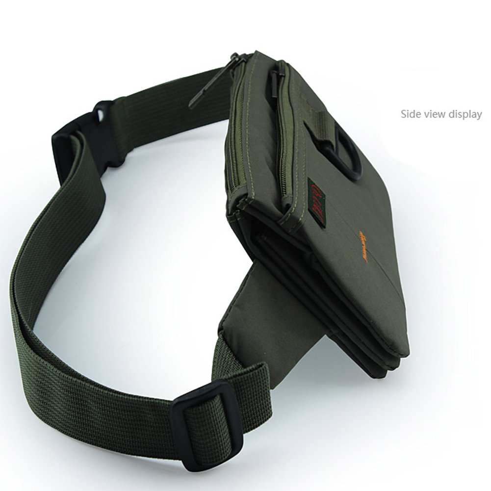 It is a thin, lightweight waist bag with multiple pockets and different pockets.