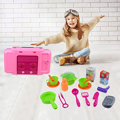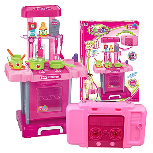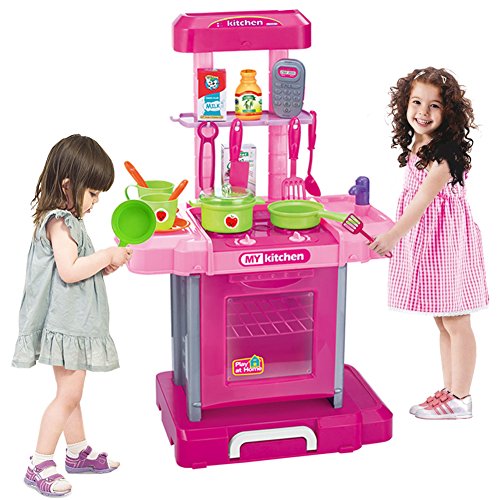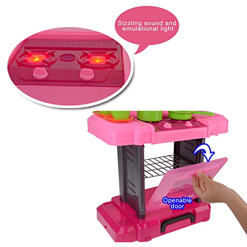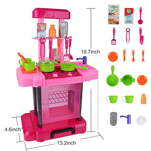 Portable:This kitchen playset is easy to assemble and can be folded as a suitcase when go out,perfect for indoor or outdoor,save space and convenient.