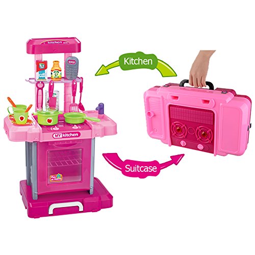 Selling Points of BFOEL Kitchen Playset: BFOEL kitchen playset can be changed into a suitcase,which is portable for kids to enjoy outdoor play.