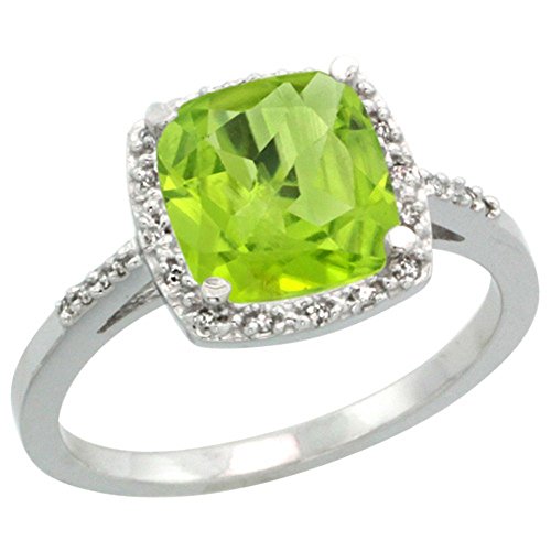 -. Title : Sterling Silver Diamond Natural Peridot Ring Cushion-cut 8x8mm, 1/2 inch wide, sizes 5-10