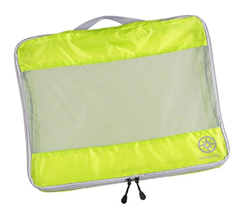 -. Feature : Ultra-light weight, water-resistant translucent rip-stop silnylon, provides durability and allows easy identification of clothes packed / Interior seams are fully sewn with protective nylon tape for durability / Snag resistant mesh top panel, allows for ventilation, identification, and keeps delicate fabrics protected / Top webbing handle, for carrying as a single item / Nylon coil self-repairing zippers glide smooth sizes- large: 14.5 x 11.5 x 3 inches