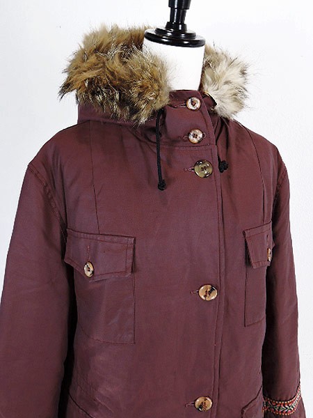 たっぷりのダウンとリアルファー付きのフード、ポケットもたくさんあり。チロリアンテープが可愛いアクセントです☆