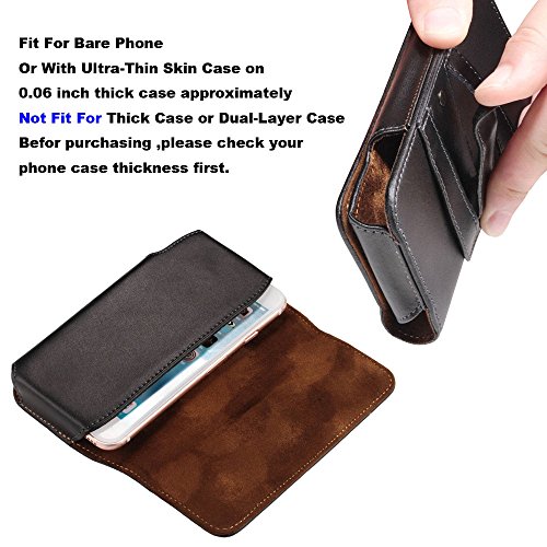 -. Feature : High Quality Genunie Leather Material,Soft and Comfortable To Touch, Durable For Long Use. With Belt Clip And Belt Loop, / Hands Free And Pockets Free Convenient To Take Your Phone With You.Easy To Clip On And Off Your Belt. / With Magnetic Closure And Microtriche Inside The Case ,Protect Your Phone From Scratch Very Well. / Fit For Bare Phone or With a Ultra Thin Skin or Case On (0.06 inch thick case approximately),Not Fit For Thick Case or Dual-Layer Case on.(Inside Dimensions:6.1 x2.75 x 0.71 Inch) / Fit for iPhone 7 Plus 6S Plus, 6 Plus,Galaxy Note 7/5/4/3,Galaxy S7 Edge,Galaxy S6 Edge Plus