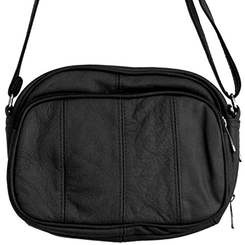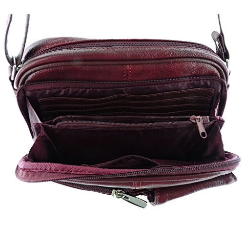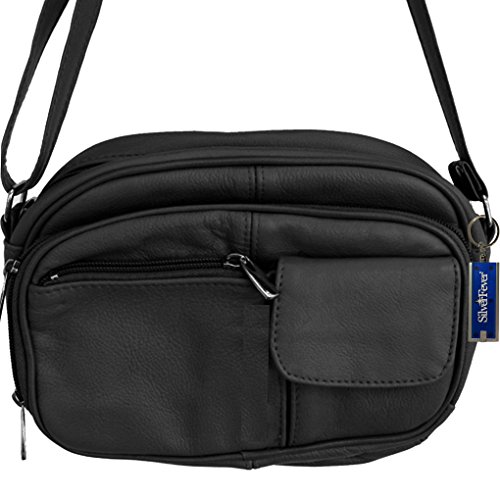 Product Description Silver Fever® is highly committed to providing superior, quality products and satisfaction. We are unable to authenticate or ensure the quality of similar products purchased through other sellers. Lighten up - travel free and easy with this mart Cross Body Leather Handbag! Say Bon Voyage to being weighed down with heavy purses, billfolds, wallets and more. This mini purse has three compartments (two zipped pocket on each side) and adjustable strap. Main zippered pocket contains a cell phone compartment and one small zipped pocket. The zippered pockets securely hold your credit cards, cash and identification and free you from the need to carry your heavy wallet. 0