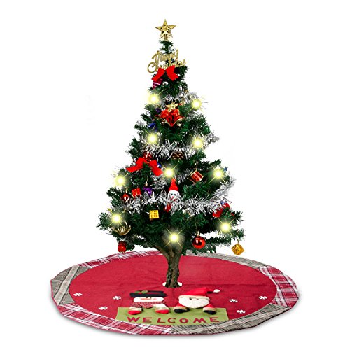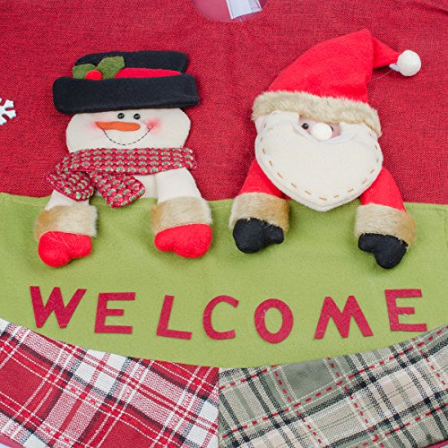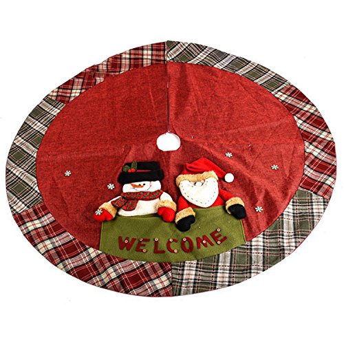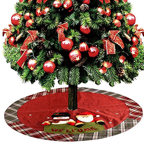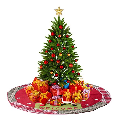 D-FantiX Christmas Decorations, 48-Inch Large Santa Christmas Tree Skirt Red with Plaid Trim