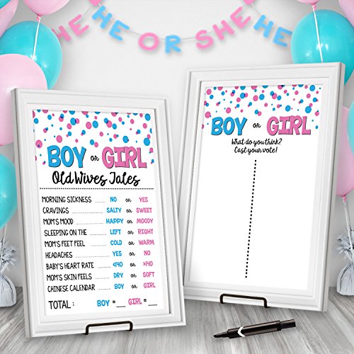 -. Title : Katie Doodle Premium Baby Gender Reveal Party Poster - Old Wives Tales Poster - Pregnancy Gender Reveal Party Decoration & Accessories For Boys & Girls