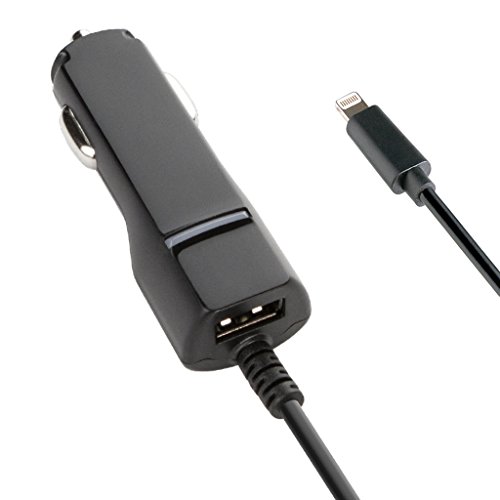 KEY MFi-Certified 3.4A Dual Car Charger w/ Lightning Connector + USB Port, Rapid Charge - Retail Packaging - Black