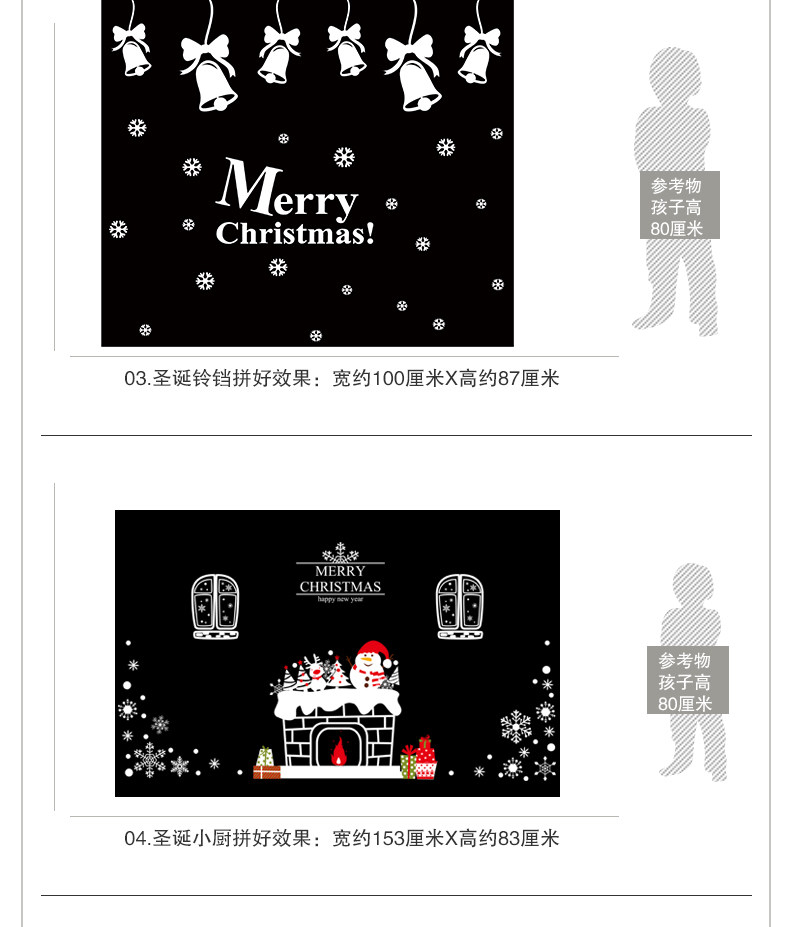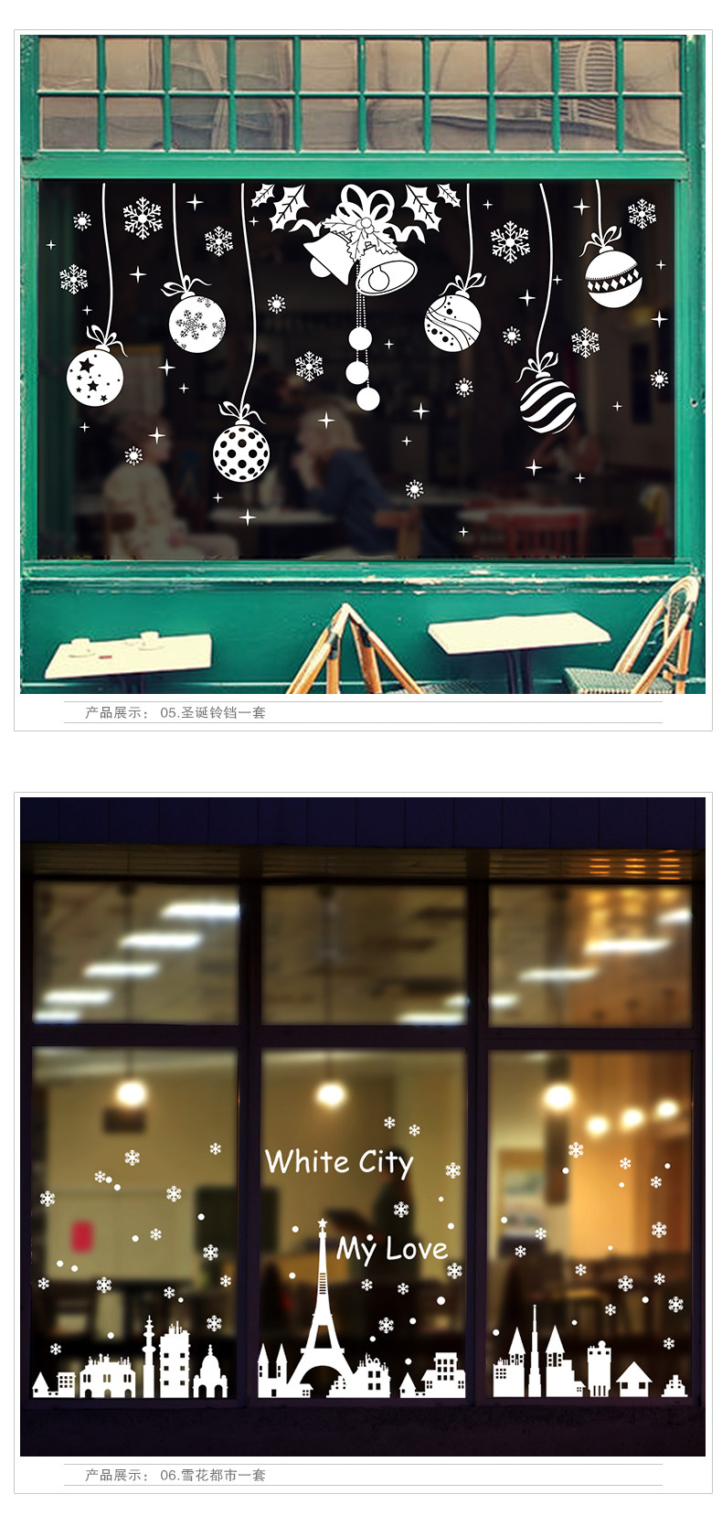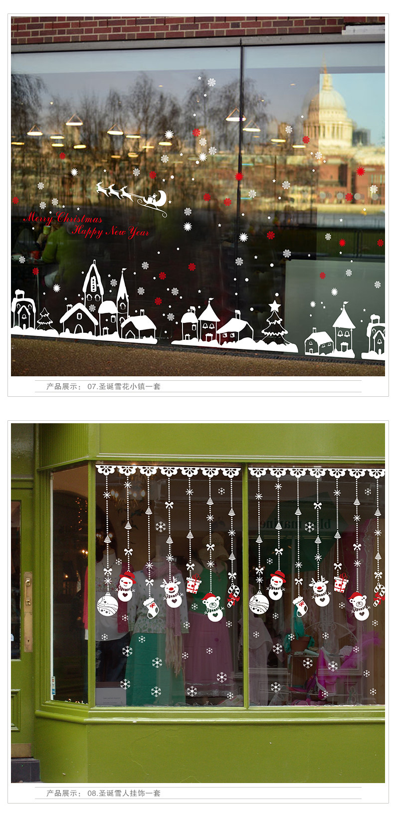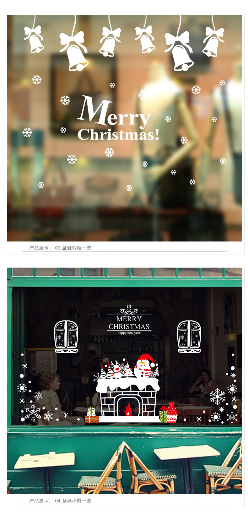 圣诞节墙贴纸贴画雪人营业店铺橱窗玻璃装饰窗花雪花铃铛新年烟囱
