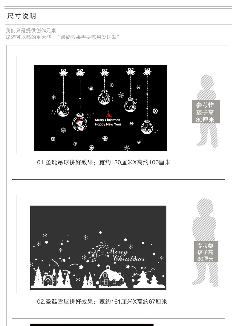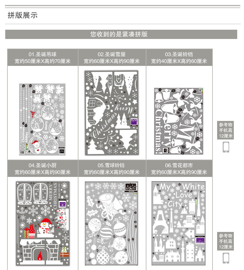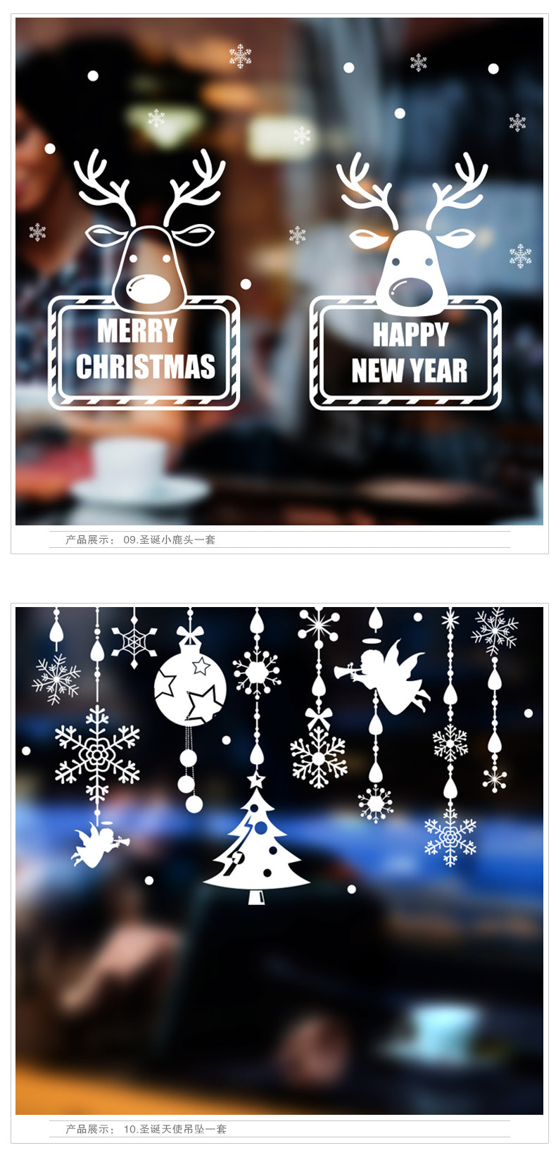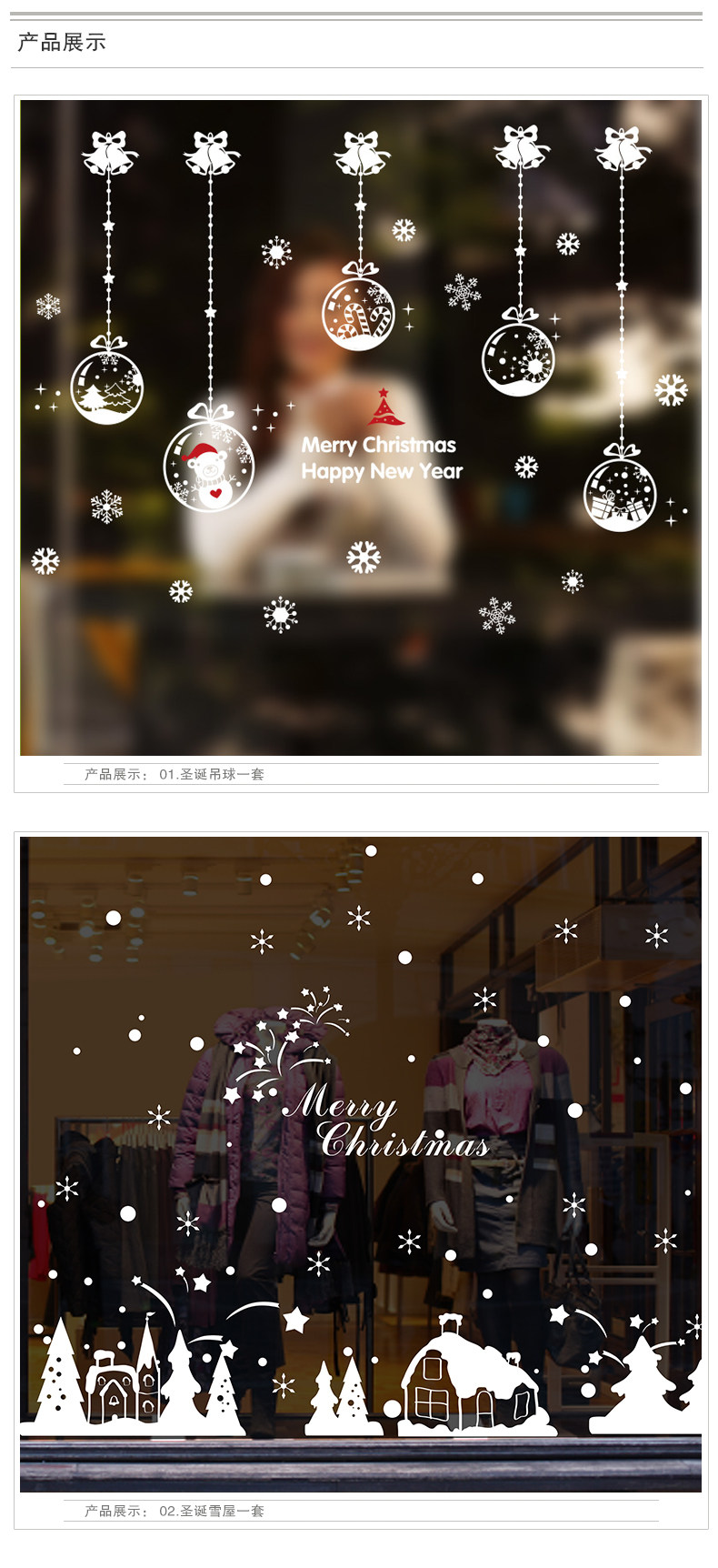 圣诞节墙贴纸贴画雪人营业店铺橱窗玻璃装饰窗花雪花铃铛新年烟囱