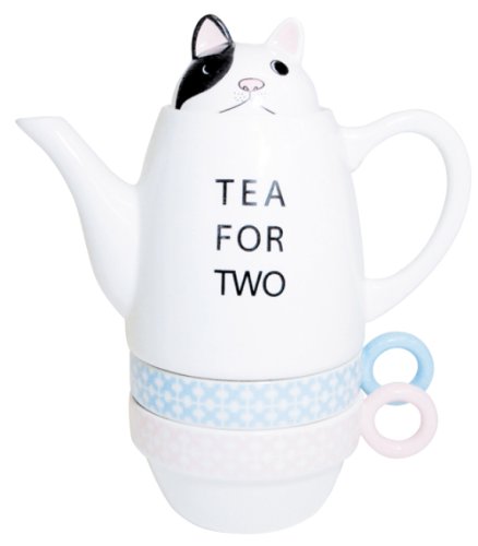 -. Title : Tea For Two Porcelain Teapot and 2 Tea Cups Set - Dog