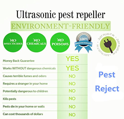 -. Feature : LATEST TECHNOLOGY - Ultrasonic Pest Repeller uses state of the art ultrasonic technology to drive pests away. Pled in to any standard household outlet Rid-Tech uses low fequency sound waves,It will disturb existing pests causing an unideal living environment for them. Get rid of rats and mice with the Repel A Pest Ultrasonic Pest Repeller! / NO HARMFUL CHEMICALS OR POISONS - Ultrasonic Pest Repellent creates an uncomfortable environment for pests so they simply leave, Eco Defense Pest Control Repeller is 100% safe around you and your family,Naturally drives pests out without killing them,Don't worry about dead pests everywhere.you and your pets are perfectly safe and won't hear a noise! / SAVE HUNDREDS ON PEST CONTROL - No need spend thousands on dangerous exterminators and needlessly expose your kids, pets and yourself to poisonous, synthetic chemicals. Simply plug the Repel A Ultrasonic Pest Repller into the wall ! / BEST SOLUTION for Mosquitoes, Mice,Rats,Cockroach,Fly,Moths,Ants,Spiders,Fleas,Bed Bugs,Rodents, It will not harm your children, or pets, it is completely safe as long as your pets do not include roaches, rats or any kind of insects / QUALITY GUARANTEE - Based on our new environmentally- friendly, improved ultrasonic technology, this pest repeller comes with a 100% satisfaction and quality guarantee.
