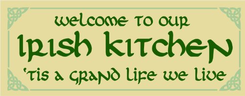 - Reads: "Welcome to our Irish Kitchen, 'tis a grand life we live"