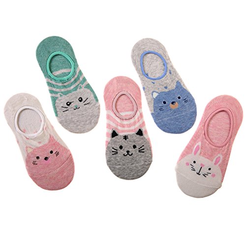 -. Feature : NO SHOW SOCKS: Velice Cute Animal no show low cut socks instant comfort and invisibility in all of your sneakers,loafers,boat shoes,canvas shoes. / ANTI SLIP SILICONE HEEL GRIP: The silione finish inside the heel allows the no show socks to hug your feet and prevent slip off. Keep your no show socks stay put all day long. / HIGH QUALITY: 100% Brand New High Quality Cotton Socks, Made of 80% Cotton,15% Nylon,5% Spandex. Comfortable and Soft for your toes and feet. They also Breathability, Antibiosis, Absorbent ,Deodorization . / PACK: Pack includes 5 pairs of womens socks, each with a different color scheme. As showned pairs quantity of socks! Free size, is suitable for US shoe size 5-9! / APPLICABLE TO MANY OCCASSION: The no show low cut socks could be worn to any indoor or outdoor activities. Applicable to Many Occasions, Casual , Various events, Dinner party, Wear to Work, Home, Sports,etc. You can easily match with sneakers, athletic shoes, dress shoes, boat shoes, loafers as well as low cut shoes. Suitable for any season to wear.