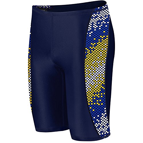 Studio : Speedo Men's and Women's Swimwear Publisher : Speedo Men's and Women's Swimwear Binding : Sports Product Description Speedo equals better fit, performance, quality, and innovation. The Razor Dot Endurance Spliced Jammer is a great team or every day suit from our race/performance line with tech inpsired print color blocking. The jammer styling is great for adding compression during your swim to reduce fatigue. The suit features our exclusive endurance chlorine resistant fabric to last 20 times longer than ordinary spandex, and also has our four way stretch technology for a body hugging fit and softer feel. So no bag and sag, and it looks like new for longer. Our flatlock seam technology offers stronger seams, optimal stretch, and added comfort. The suit is ideal for swim meets, lap swimming, pool play, or any water activity. Look and feel your best in or out of the water, while you play, train or win in speedo, the choice of champions. 0