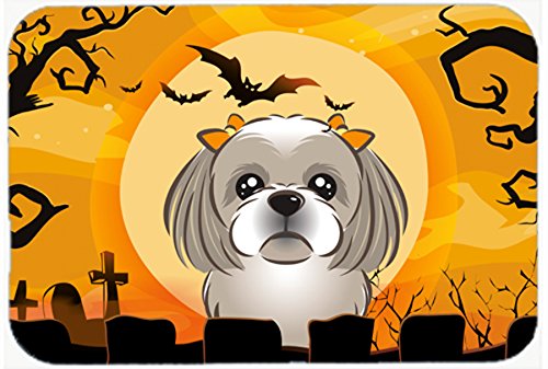 Caroline's Treasures BB1808JCMT Halloween Gray Silver Shih Tzu Kitchen or Bath Mat, 24 by 36", Multicolor