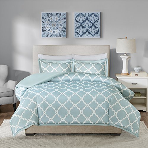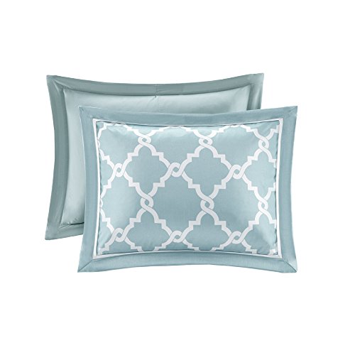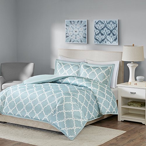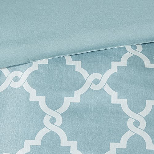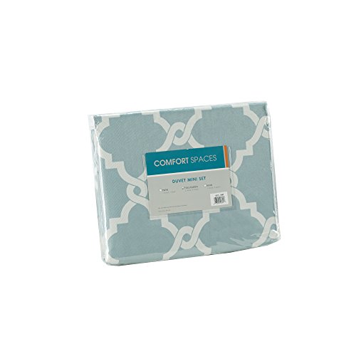 MILTON MINI DUVET COVER SETUpdate your bedroom with the casual elegance of the Comfort Spaces Milton Mini Duvet Cover Set. A fretwork design is beautifully printed on the soft blue duvet cover and shams, for a chic coordinated look. The solid blue reverse complements the top of the bed, while a button closure allows you to place a comforter insert within the duvet cover for soft comfort and warmth. Machine washable for easy care, this mini duvet cover set elegantly refreshes your bedroom décor.