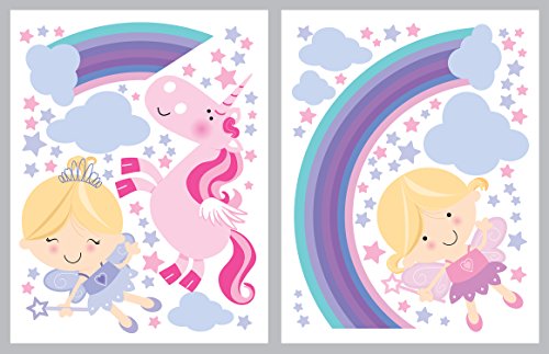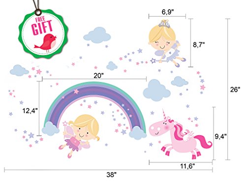 - WASHABLE fairy wall decals, hold fast, no color loosing during decades. REMOVABLE cute decals and leave no traces of glue. Not reusable wall decals for toddlers. IDEAL unicorn decal for nursery wall decals girl, children's bedroom, playroom, classroom.